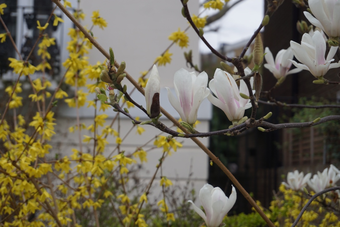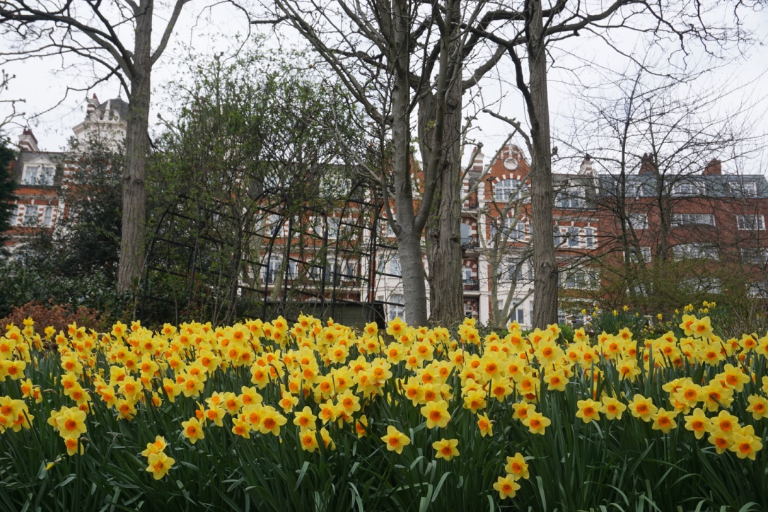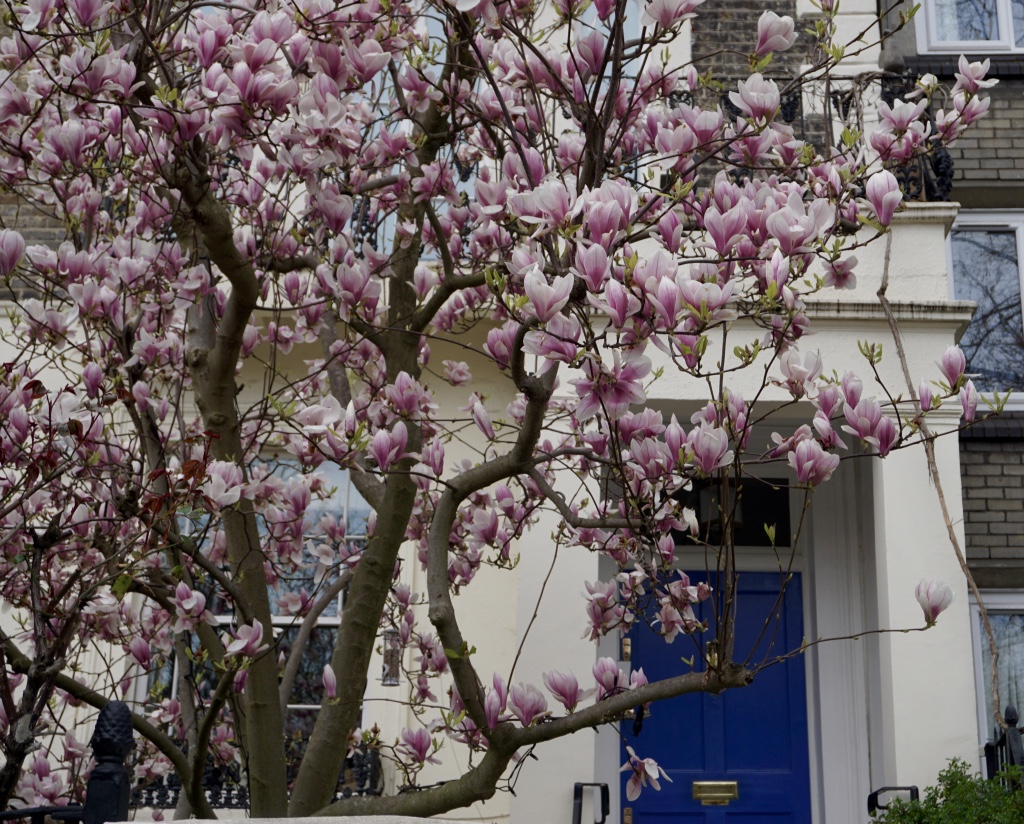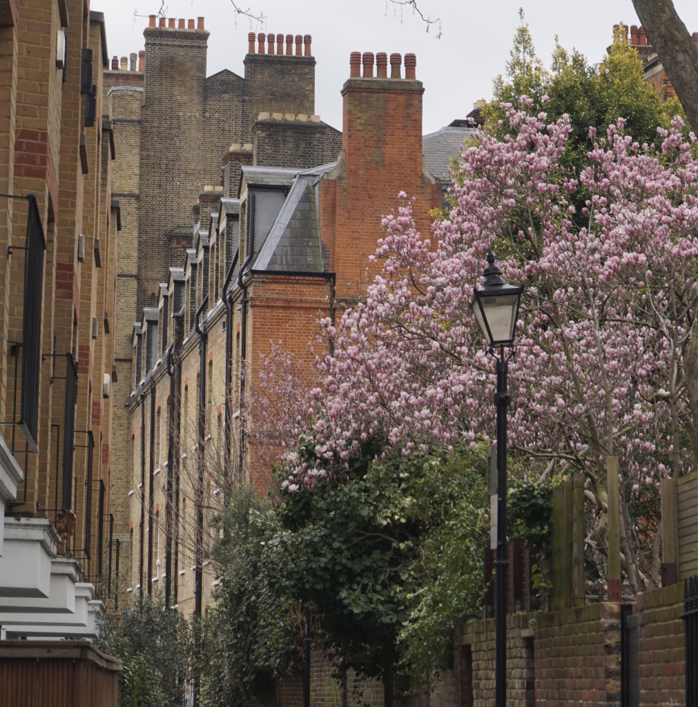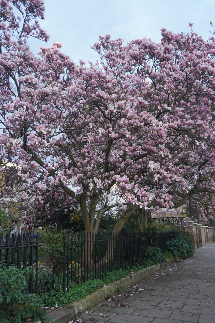 Chelsea/ South Kensington : magnolias, glycine, cerisiers, jonquilles