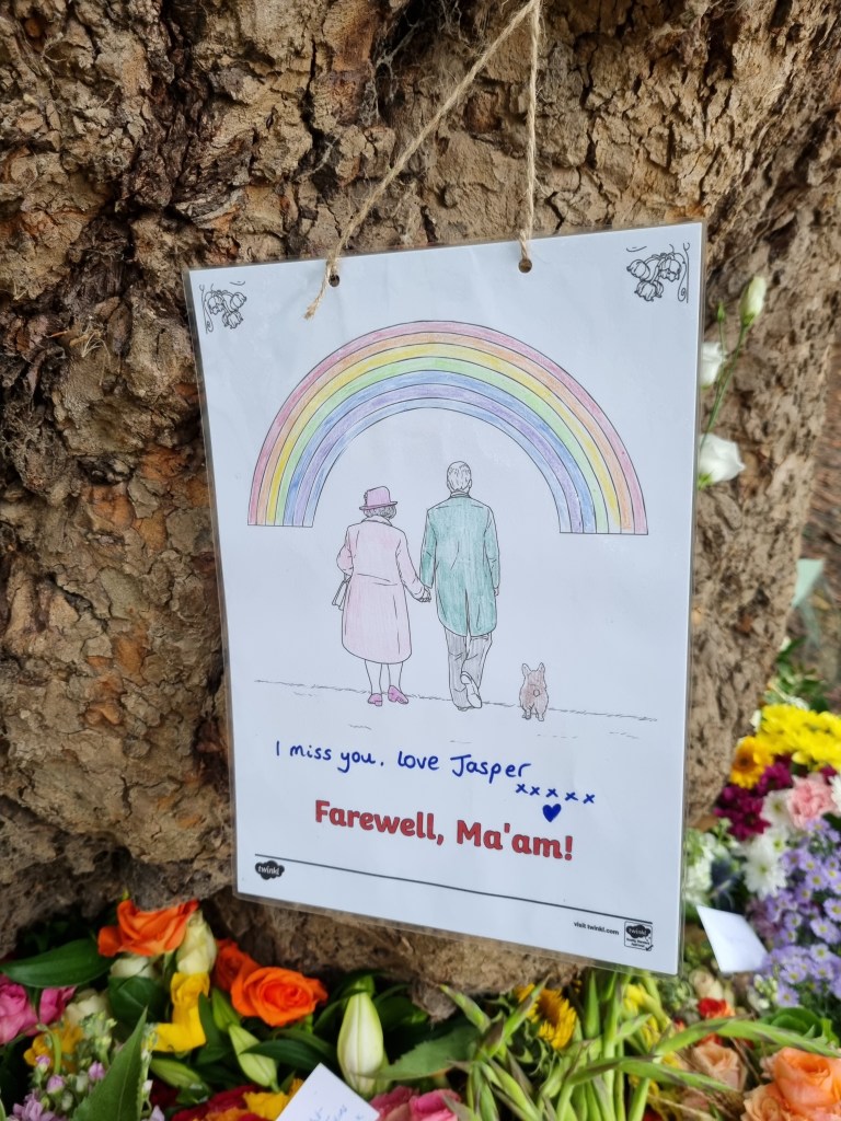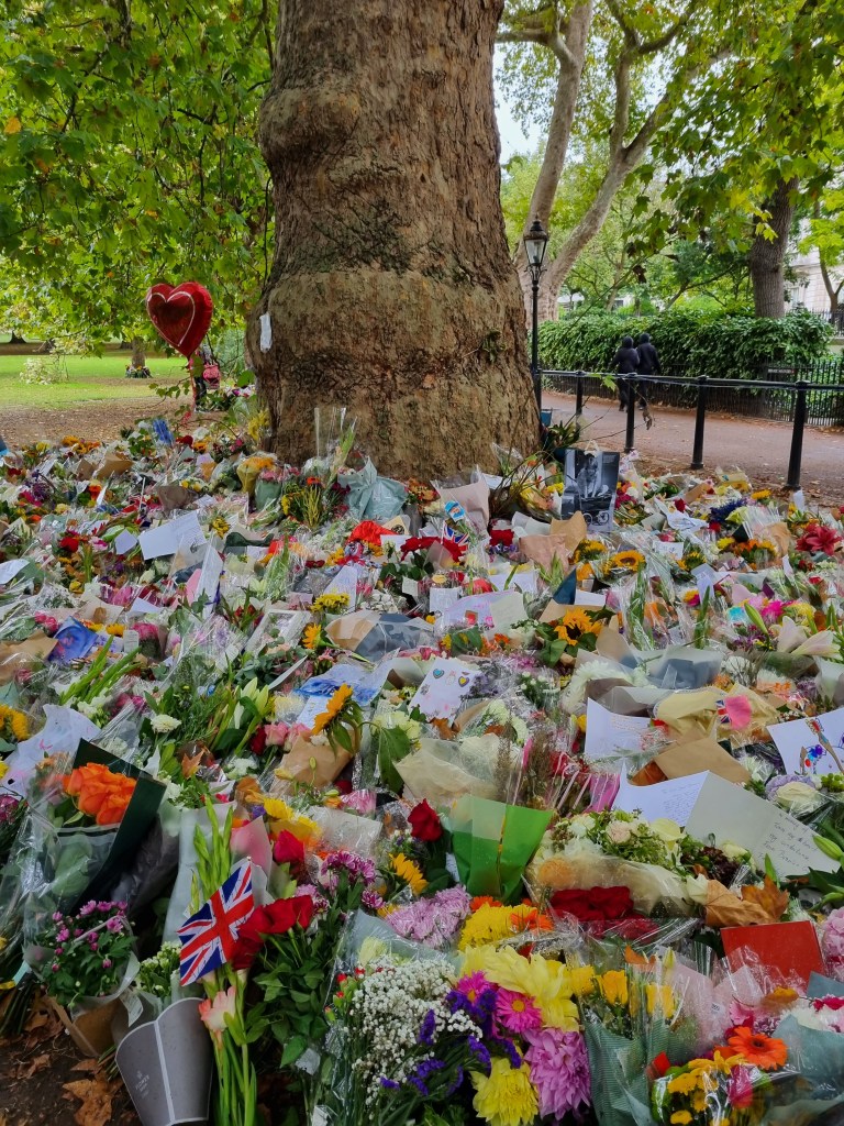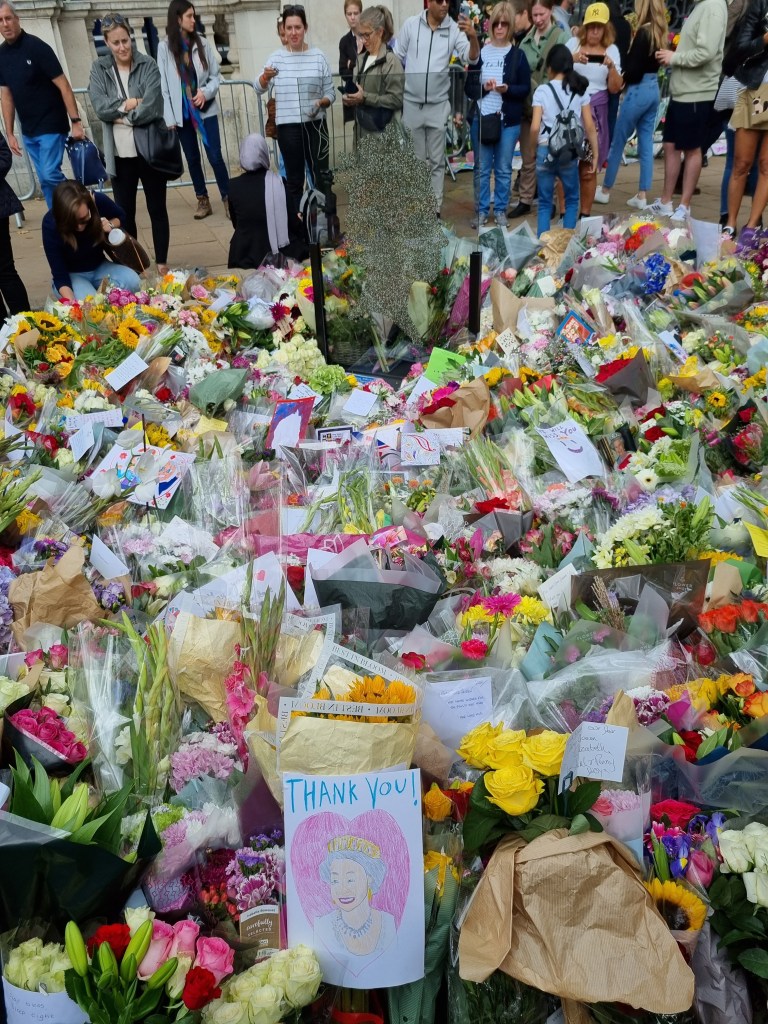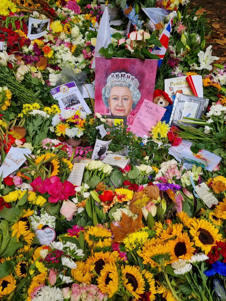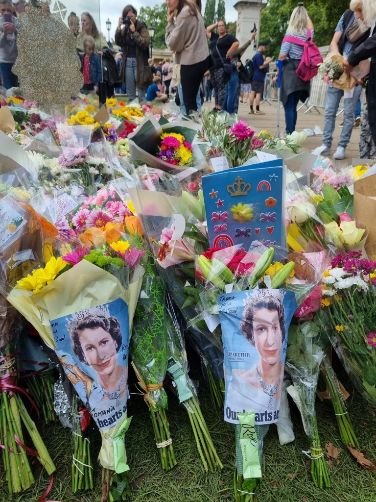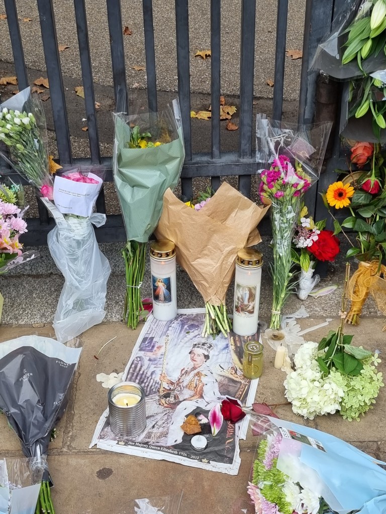 Je me suis moi-même rendue à Buckingham Palace pour déposer des fleurs le samedi suivant le décès et j’ai pu voir le Roi Charles III passer en voiture. En revanche, je n’ai pas fait partie de ceux qui ont attendu des heures et des heures pour voir le cercueil de la Reine à Westminster Hall. Je suis toutefois passée devant cet endroit le soir de l’arrivée du cercueil et la nature nous a offert un joli coucher de soleil à cette occasion et j’ai regardé de temps en temps la diffusion de la procession, ça avait l’air assez impressionnant.