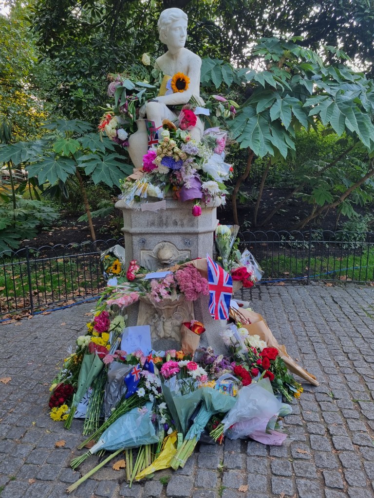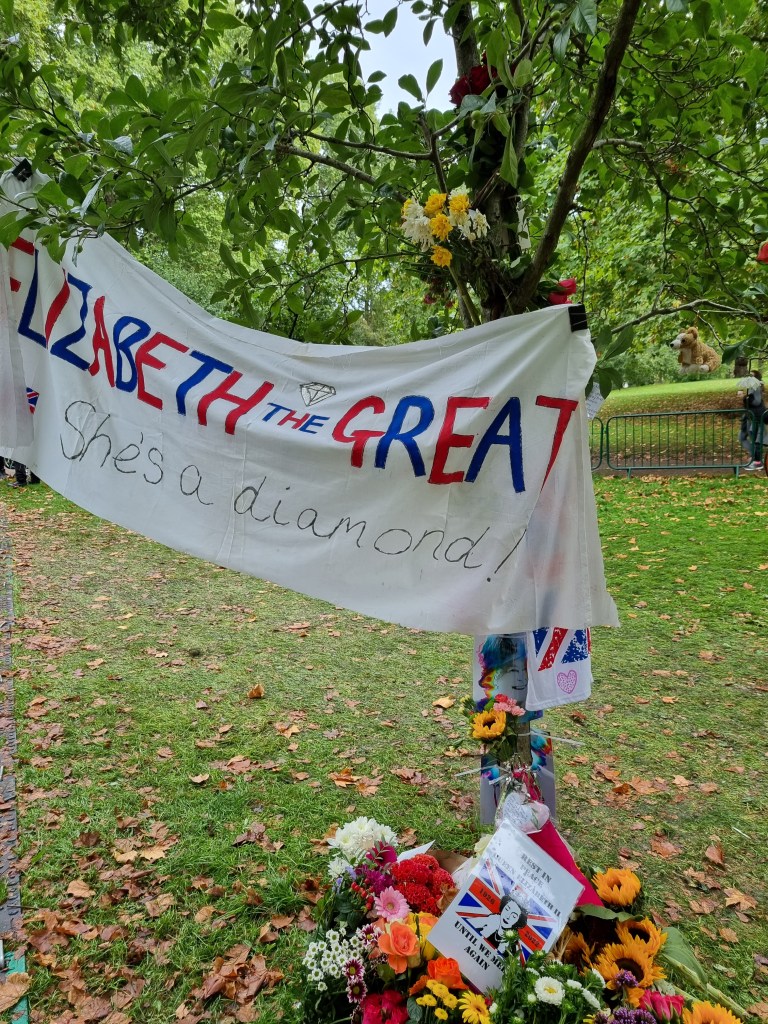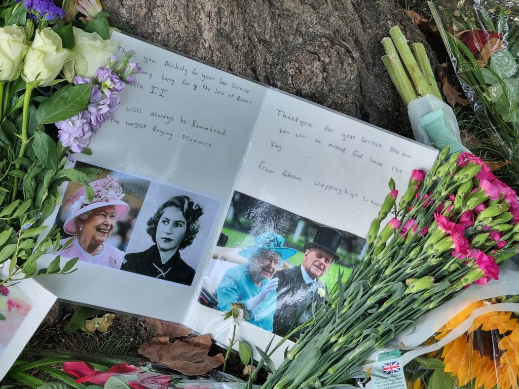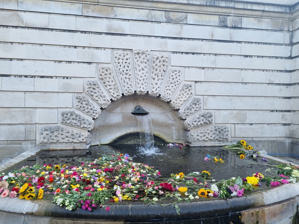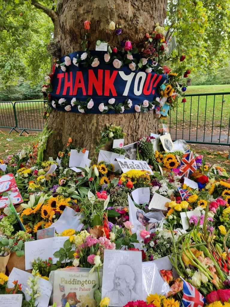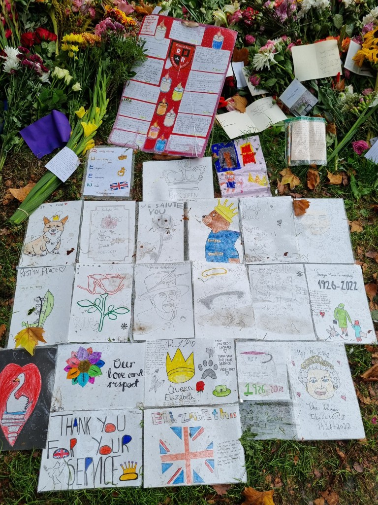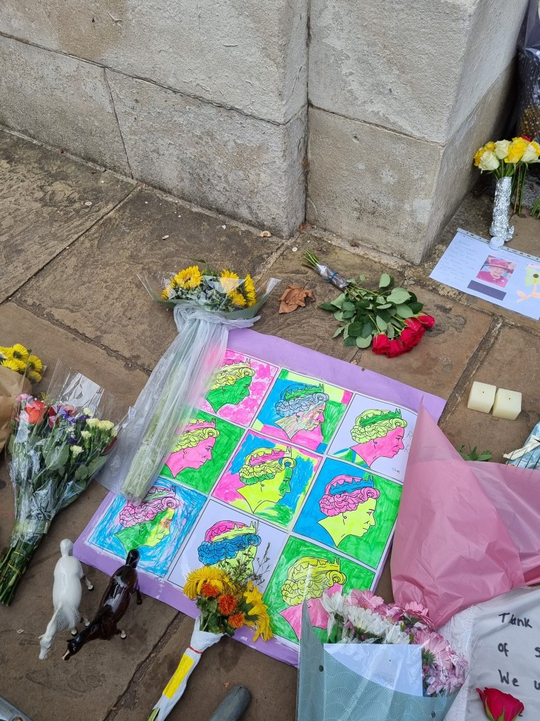 Je me suis moi-même rendue à Buckingham Palace pour déposer des fleurs le samedi suivant le décès et j’ai pu voir le Roi Charles III passer en voiture. En revanche, je n’ai pas fait partie de ceux qui ont attendu des heures et des heures pour voir le cercueil de la Reine à Westminster Hall. Je suis toutefois passée devant cet endroit le soir de l’arrivée du cercueil et la nature nous a offert un joli coucher de soleil à cette occasion et j’ai regardé de temps en temps la diffusion de la procession, ça avait l’air assez impressionnant.