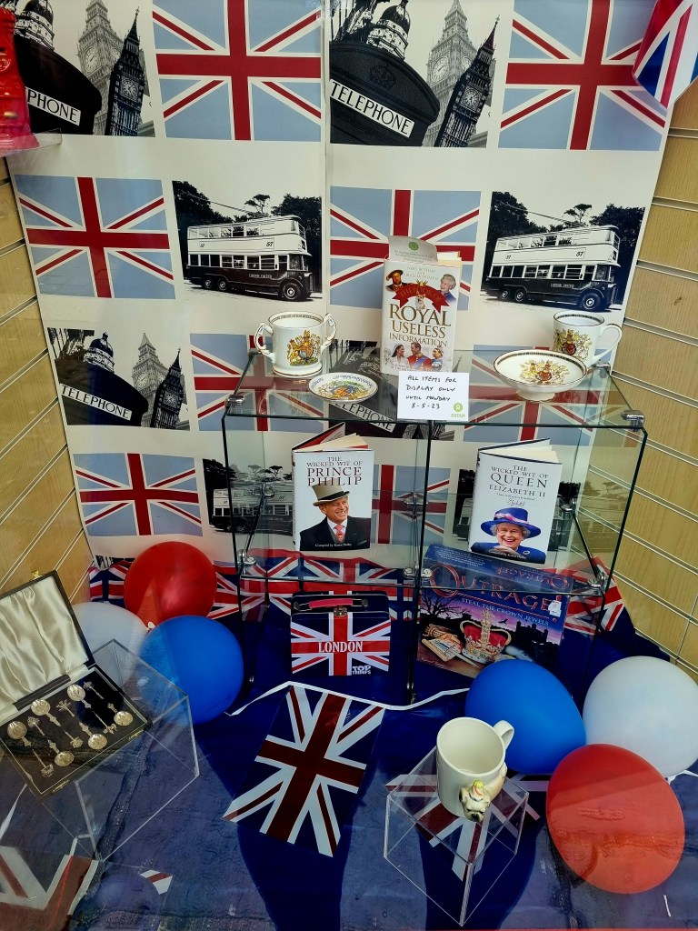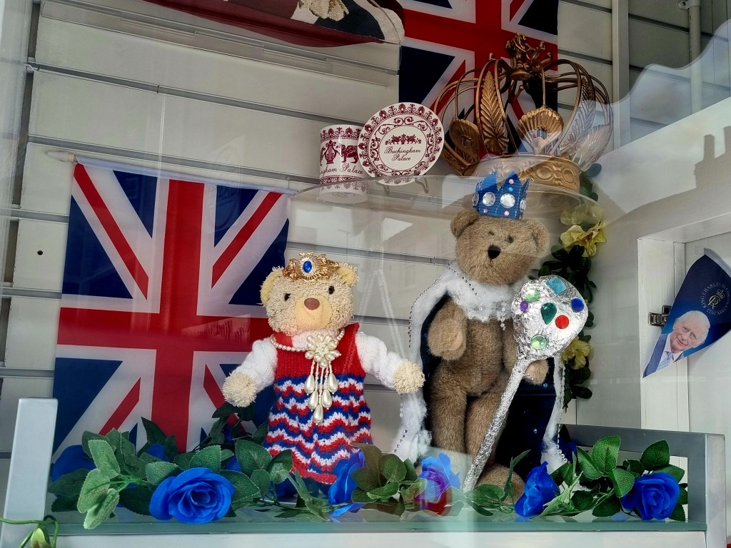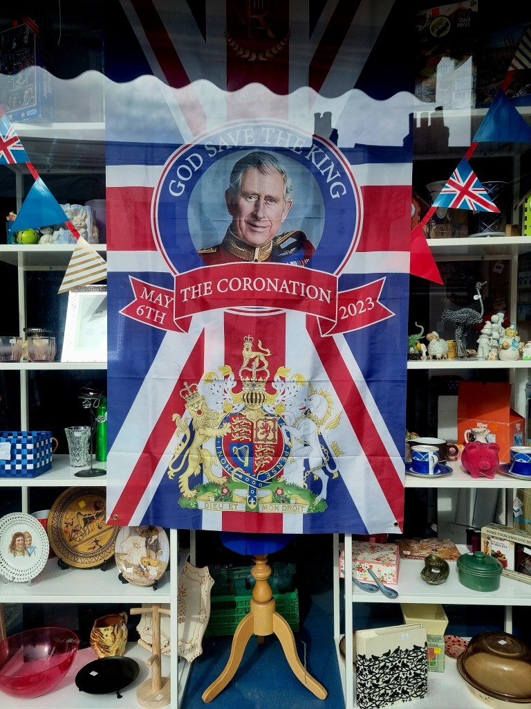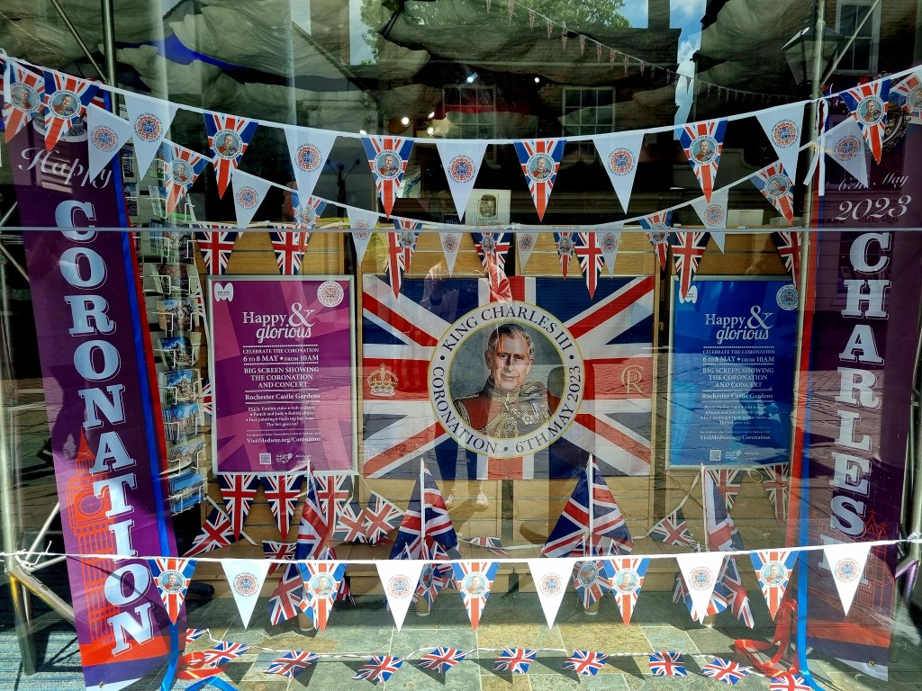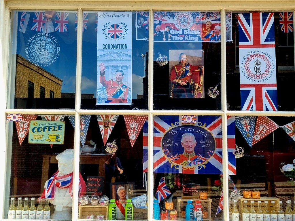 Le pays s’est préparé des semaines avant que le couronnement ait lieu. Tous les magasins ont vendu des articles en lien avec cet évènement et je serais curieuse de connaitre les retombées économiques ! On a pu trouver des produits alimentaires estampillés au nom du Roi, des habits et des accessoires, des objets de décoration, des livres… De quoi se préparer pour fêter comme il se doit ce changement ! On reconnait bien l’art des anglais de sortir les décorations pour le moindre évènement :).