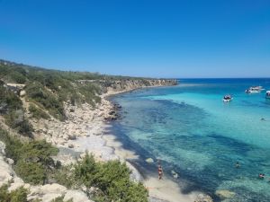 Le Blue Lagoon chypriote se mérite ! Niché dans un cadre exceptionnel dans le nord-ouest du pays, loin des routes et offrant des nuances de bleu incroyables, y accéder peut être compliqué mais il en vaut la peine ! J’aimerais pouvoir dire que parce qu’il est difficile d’accès, c’est un lieu paisible mais cela serait sans compter sans les compagnies offrant des croisières vers ce superbe lieu, qui génèrent un flux non stop de visiteurs et qui peuvent déranger un peu la beauté des lieux avec leurs gros bateaux. Les bateaux les plus petits ne sont pas en reste et comme il n’y a pas vraiment de zone de baignade delimitée, on peut vite se retrouver nez à nez avec un bateau qui n’était pas là il y a 5 minutes.