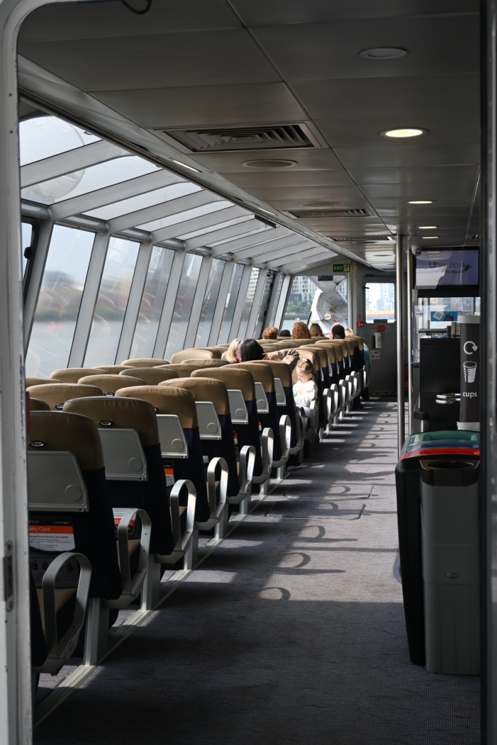 Attention, ce n’est pas une croisière touristique, le bateau ne ralentit pas pour que l’on puisse prendre des photos ou admirer Londres. Ceci étant, à partir de Tower Bridge, les bateaux sont soumis à des restrictions de vitesse et on peut admirer la vue sans trop de soucis. C’est aussi très pratique pour ralier plus rapidement que le métro certains points éloignés comme par exemple Westminster et Battersea.