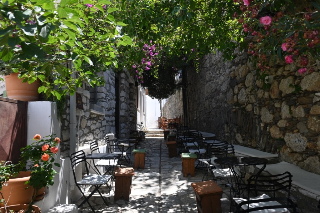 Ce village est désigné comme étant le village de marbre de Naxos, en témoignent ses rues construites avec ce matériau. Il est très joli et c’est un régal visuel que de se perdre dans ses petites rues (je n’ai pas pris beaucoup de photos mais promis, il vaut la visite !).