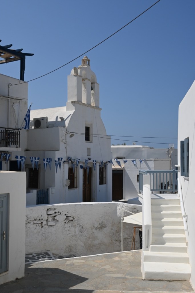 Niché dans les pentes de la montagne, Koronos est un charmant village où c’est un plaisir d’arpenter les ruelles. C’est le village le plus éloigné de Chora et il reste relativement calme et peu fréquenté.